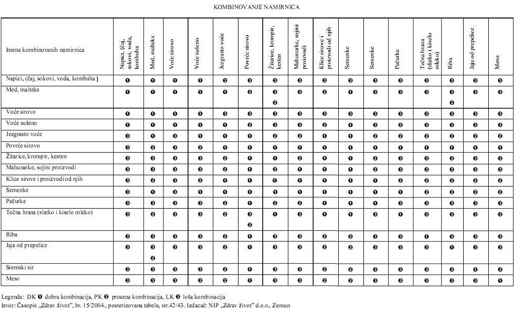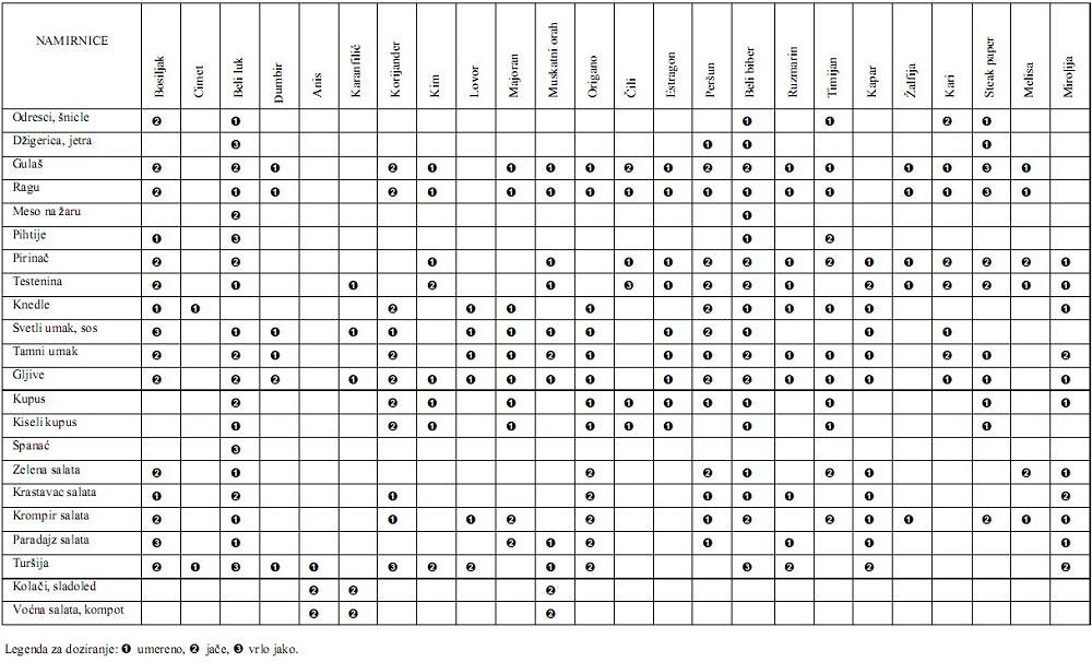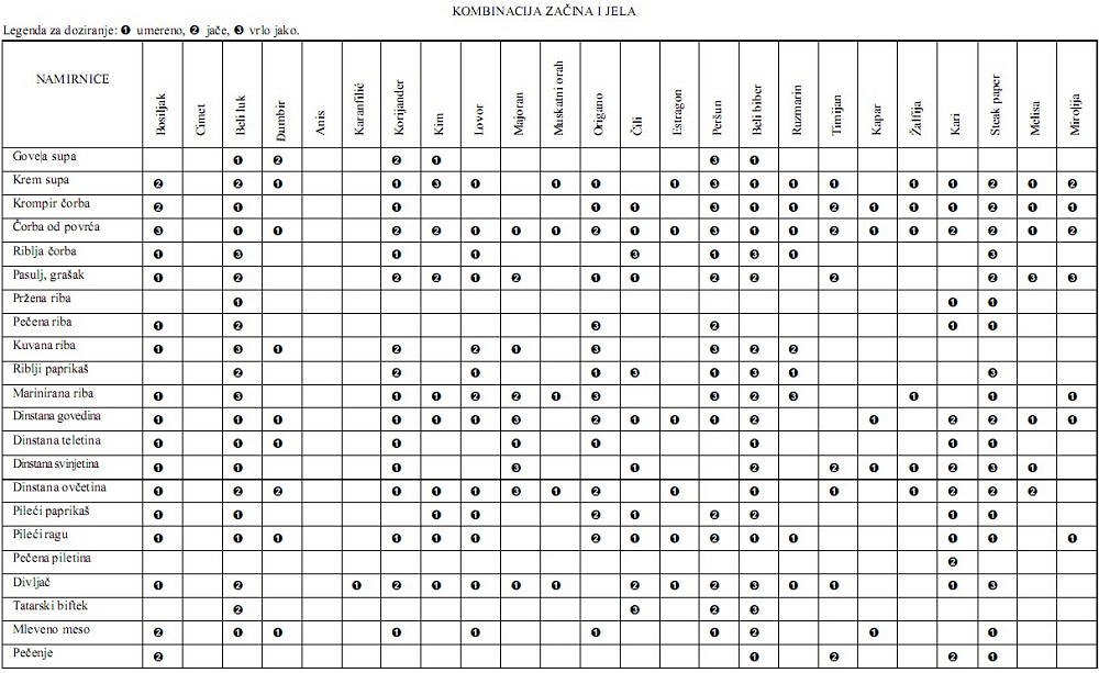 Tri tabele u kojima se možete informisati o kombinovanju namirnica i začina.
