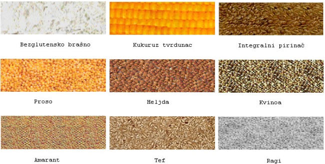 U grupu Nedozvoljene glutenske žitarice ubrajaju se: pšenica (Triticum), ječam (Hordeum sativum), raž ili ovas (Secale cereale), zob (Avena sativa), njihove prerađevine i sve kombinacije jela sa njima.